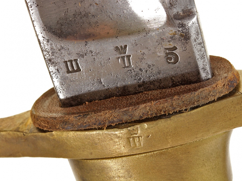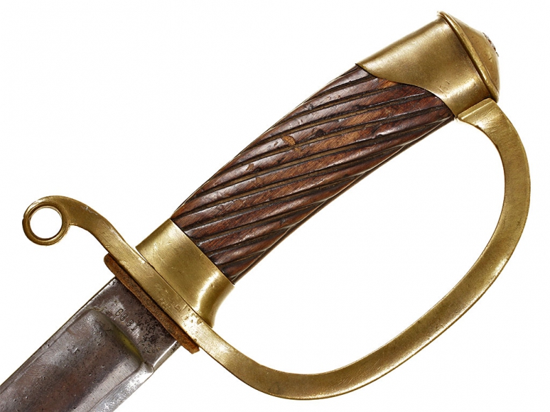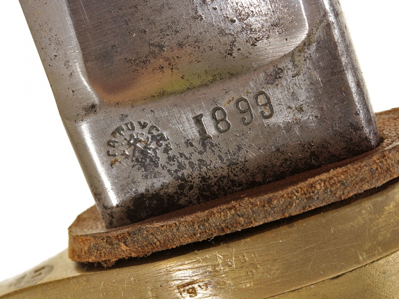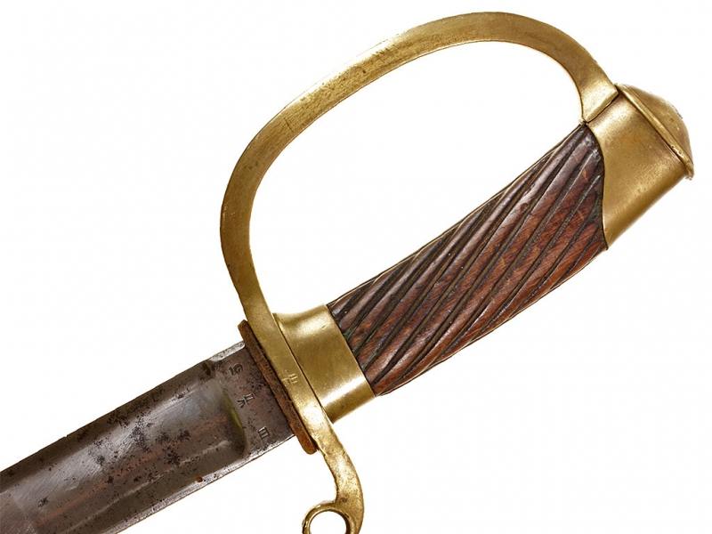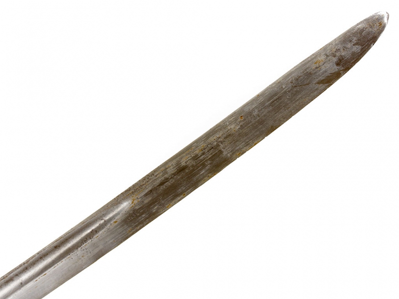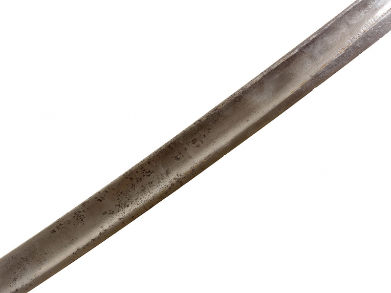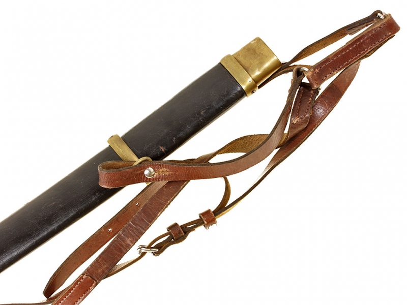 Шашка нижних чинов драгунского типа образца 1881 года. Клинок с клеймом Златоустовской оружейной фабрики у основания с годом выпуска - 1899, на оборотной стороне - клейма военной приемки. Рукоять деревянная, с продольными наклонными желобками. Прибор рукояти латунный, с клеймами военной приемки на дужке гарды. Ножны деревянные, грунтованные, с бронзовым прибором. Наконечник ножен обломан и отсутствует.