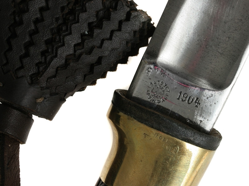 Казачья шашка нижних чинов образца 1881 года. Клинок с широким долом, имеются клейма оружейной приемки и Златоустовской оружейной фабрики с годом выпуска - 1904. На обоймице основания рукояти - клеймо подразделения "1 У.К.П." (1-й Уральский (Учебный?) казачий полк). Рукоять деревянная, с продольными наклонными желобками. Головка рукояти латунная, раздвоенная, с отверстием для темляка.