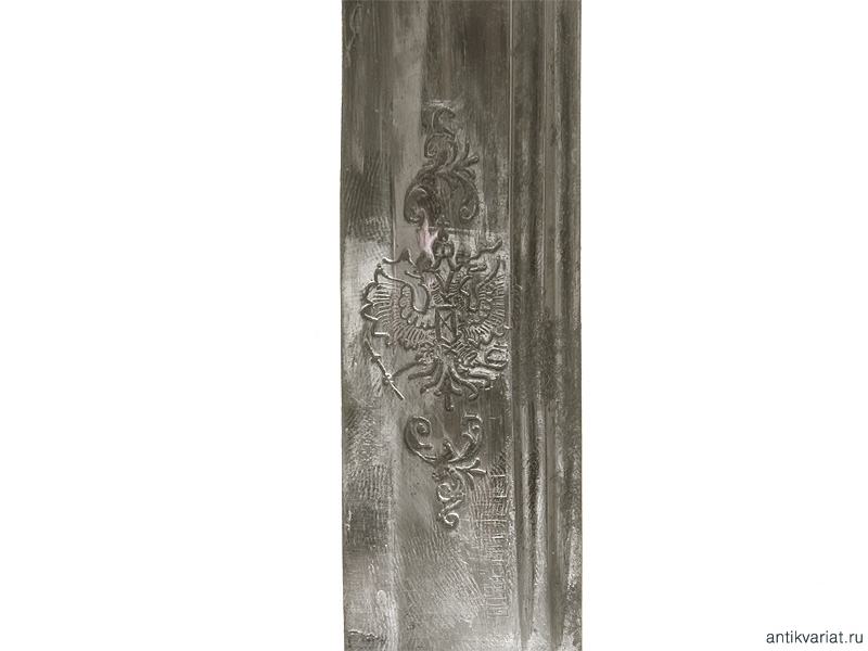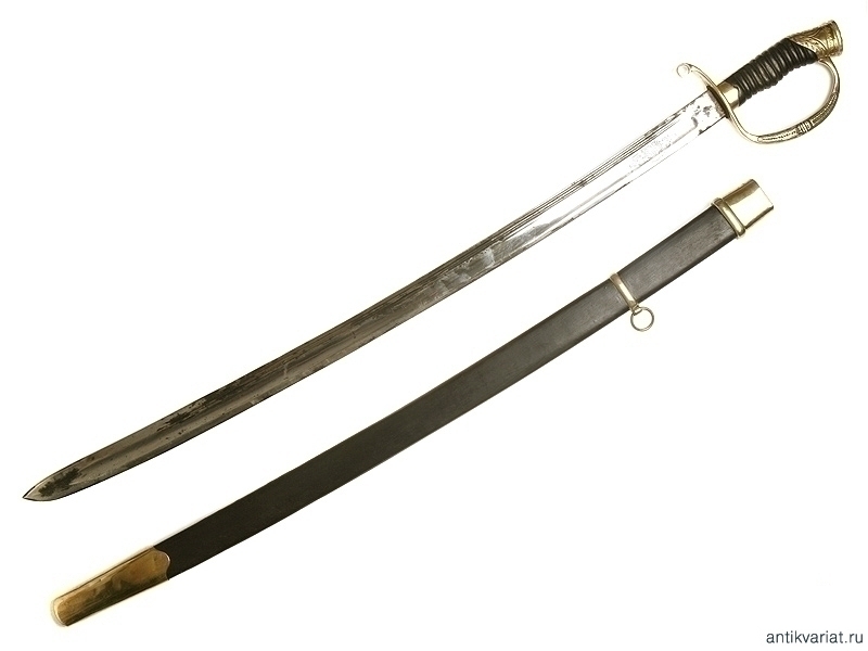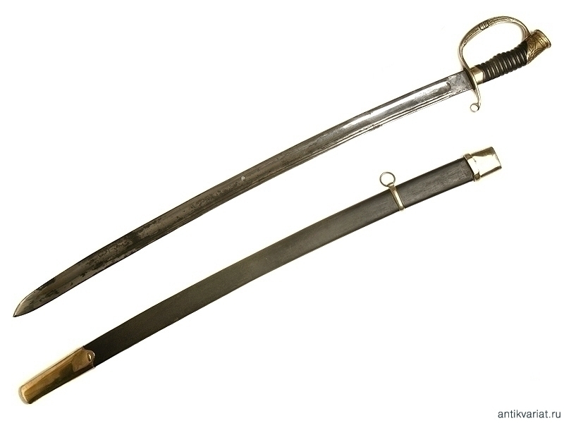 Шашка офицерская драгунского типа образца 1909 года общей длиной 92 см. Клинок с изображениями вензеля Императора Николая II и двуглавого орла. На обухе имеется надпись "Златоустъ".