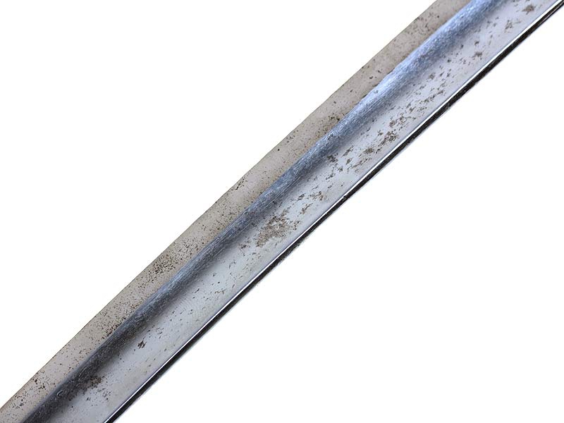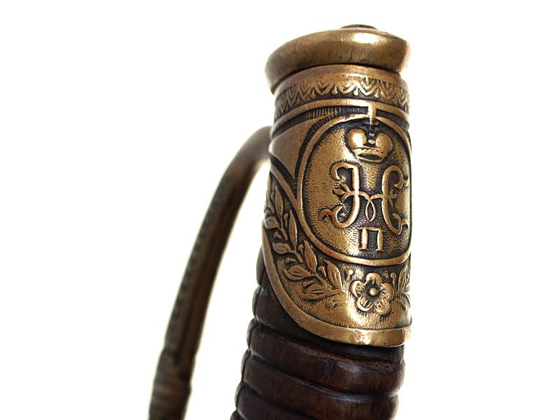 Офицерская шашка драгунского типа образца 1909 года. Клинок без клейм, никелирован в более позднее время. Прибор рукояти бронзовый, золочение не сохранилось. На навершии рукояти - вензель Императора Николая II, в правление которого владелец получил свой первый офицерский чин. Ножны отсутствуют.