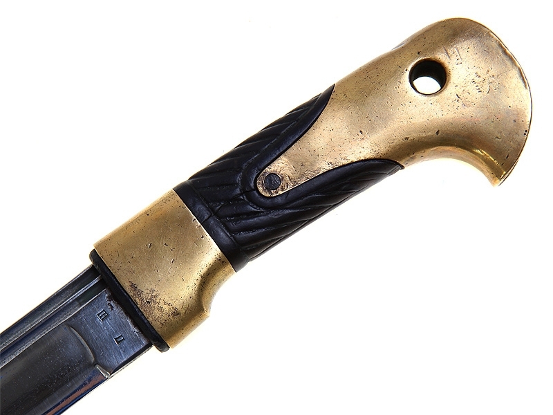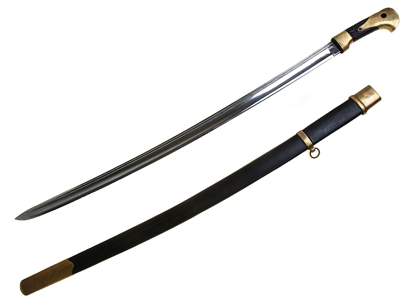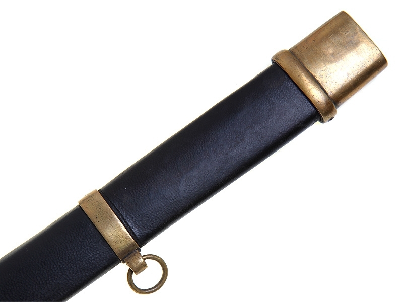 Ножны деревянные, обтянутые черной кожей, с латунным прибором, золочение также не сохранилось: прибор многократно чистили.