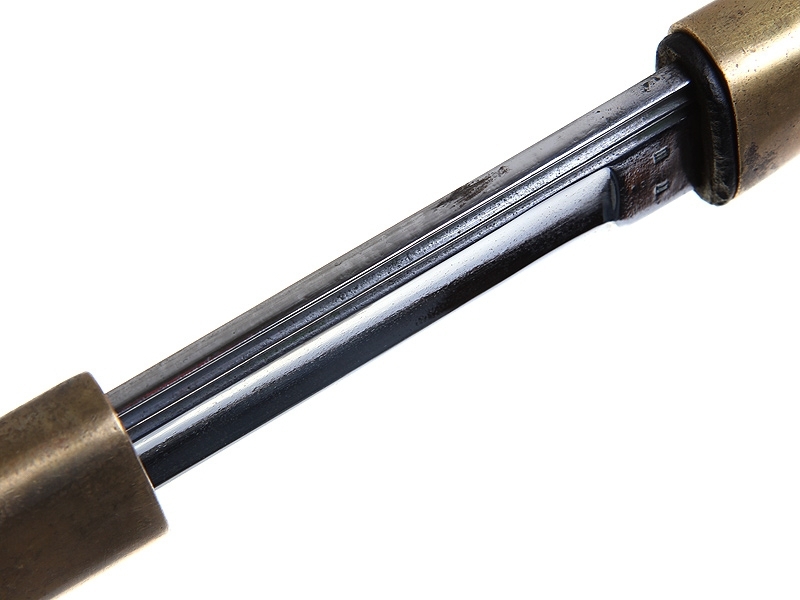 Рукоять деревянная, с поперечными желобками. Втулка и головка рукояти латунные, уставного образца. Золочение не сохранилось.