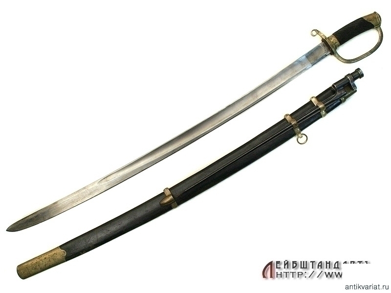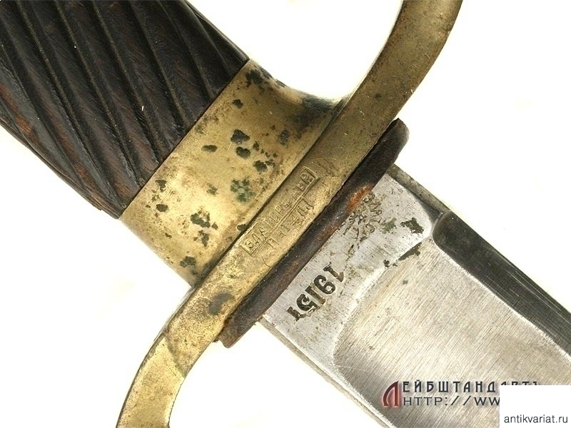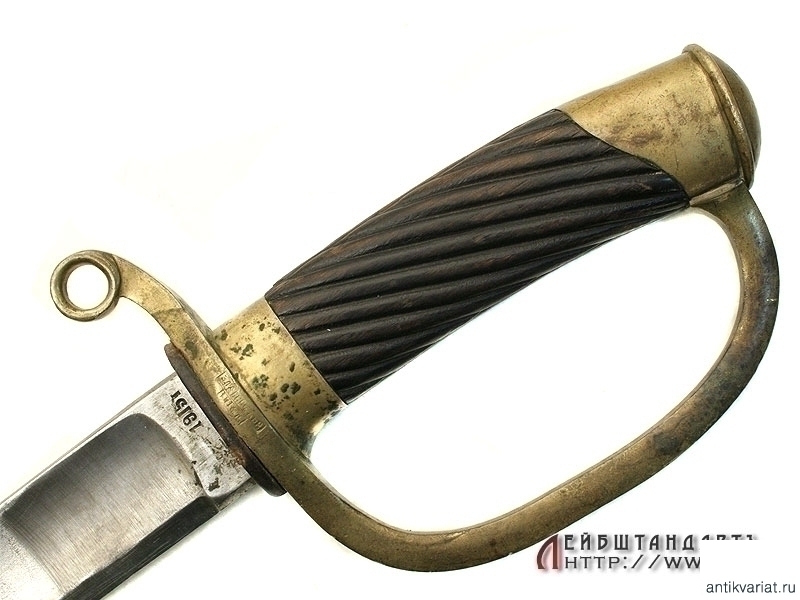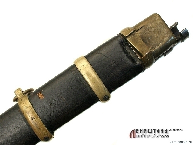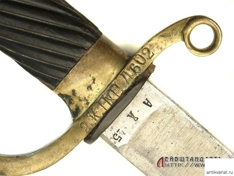 Редко встречающийся в наши дни превосходно сохранившийся образец солдатской шашки драгунского типа обр. 1881 года в полной комплектации и нетронутом состоянии. Клинок с одним широким долом, у основания находится клеймо Златоустовской оружейной фабрики с годом изготовления - 1915, а также клеймо военной приемки в виде букв "А" и цифры "45". Клинок полностью сохранил оригинальную фабричную заточку. Рукоять деревянная, с наклонными продольными желобками. Прибор гарды бронзовый, на дужке имеется клеймо Златоустовской оружейной фабрики с годом (1914) и указанием подразделения: "2. К. П. П. Д. 602". Ножны деревянные, в оригинальном черном красочном покрытии. Прибор ножен латунный, с креплением под четырехгранный штык к винтовке системы Мосина. Сам штык также превосходно сохранился.
