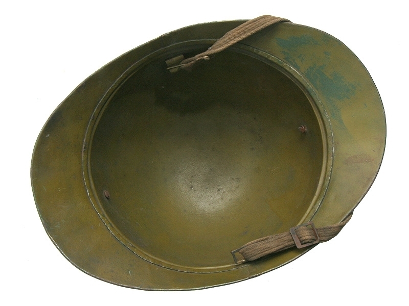 В оригинальном красочном покрытии. Подшлемник отсутствует, сохранился подбородочный ремешок. Бойцов в шлемах данного образца можно видеть на кинохронике парадов на Красной площади конца 1930-х годов.