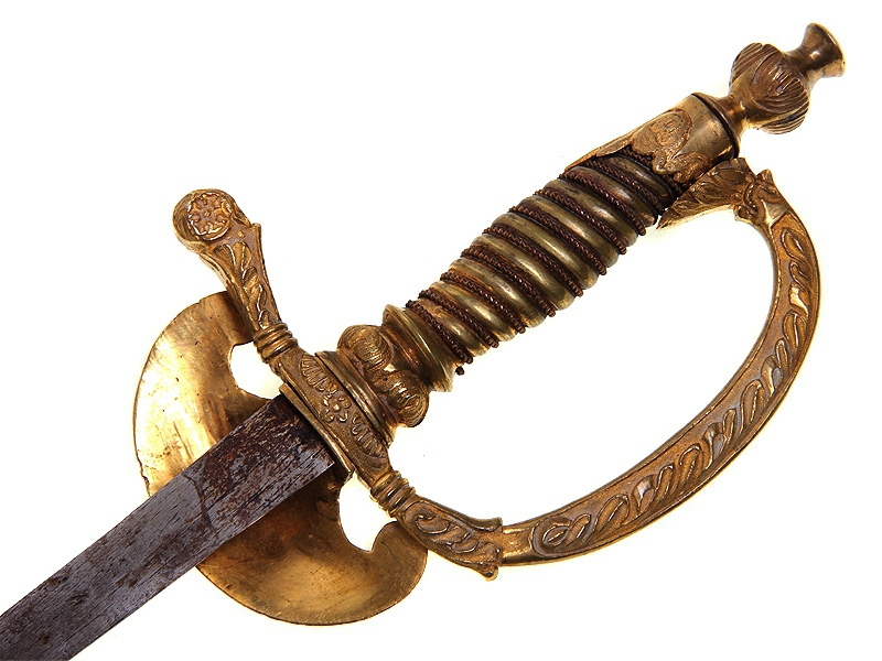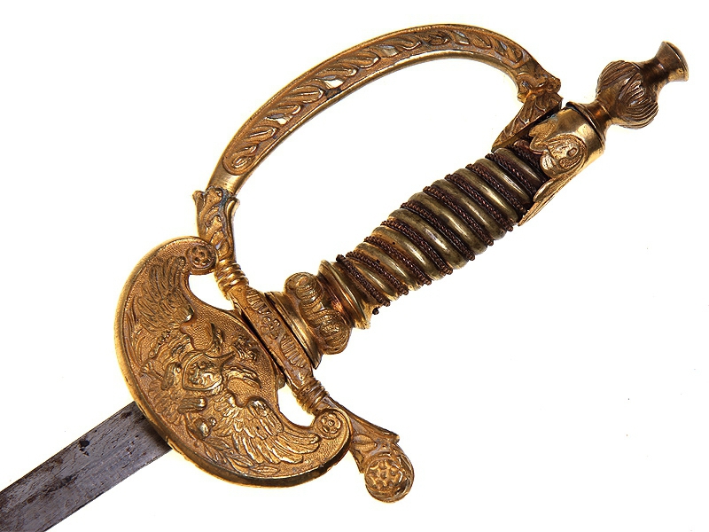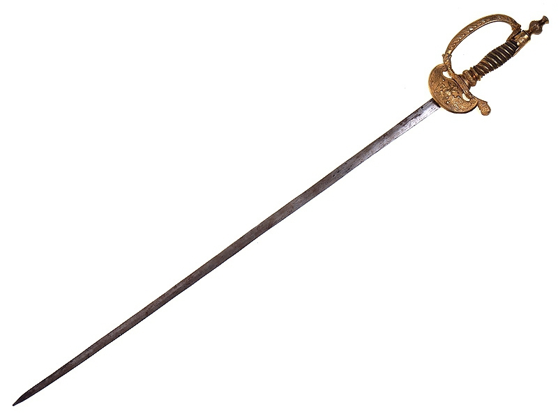 Парадная шпага чиновника государственной службы образца 1855 года. Клинок без клейм, ромбического сечения. Рукоять бронзовая, украшенная рельефным орнаментом. Чашка гарды украшена рельефным изображением Государственного герба. Ножны отсутствуют. На всех частях эфеса почти полностью сохранилось яркое огненное золочение.