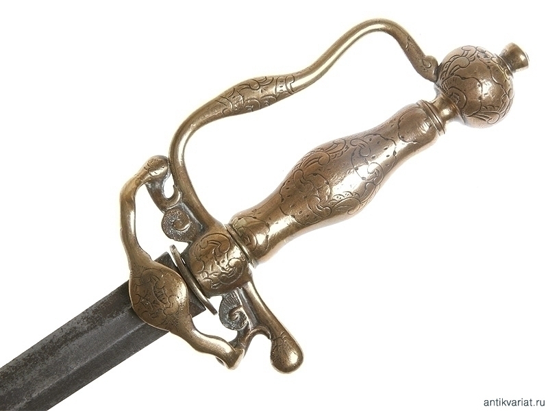Дворянская камзольная шпага второй половины XVIII века. Эфес бронзовый, украшен гравировкой. Ножны отсутствуют.