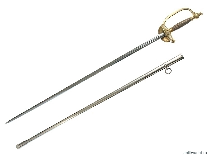 Шпага младших офицеров военно-санитарной службы образца 1816 года, изготовленная в 1870-е - 1890-е годы. Клинок ромбического сечения, без клейм. Эфес латунный, с частично сохранившимся золочением. На внешнем щитке - накладное изображение венка со змеей, обвивающей чашу. Ножны металлические, никелированные.