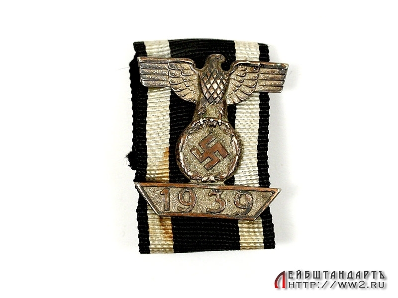 История: "Spange 1939 zum EKII Klasse 1914". 10 марта 1813 года прусский король Фридрих Вильгельм III учредил Железный крест в качестве временной награды для вручения во времена войны. Первоначально Железный крест был представлен в трех степенях: Большой крест для награждения высшего командования за успешное руководство отрядами в ходе сражений, крест Первого и Второго классов для награждения военнослужащих всех званий за храбрость и боевые заслуги. Железные кресты были повторно учреждены кайзером Вильгельмом I 19 июля 1870 года для награждения в ходе Франко-Прусской войны, а затем вновь 5 августа 1914 года королем Вильгельмом II для награждения в течение Первой Мировой войны. 1 сентября 1939 года Гитлер еще раз учредил Железный крест Первого и Второго классов и ввел Рыцарский железный крест, а также две новых шпанги к наградам первого и второго классов, которые вручались при получении Железного креста 1939 года тем, кто уже обладал Железным крестом первого или второго класса 1914 года. Обладателям шпанги разрешалось, если они имели всю необходимую документацию, приобрести ювелирную копию награды за свои личные деньги, если они этого хотели.