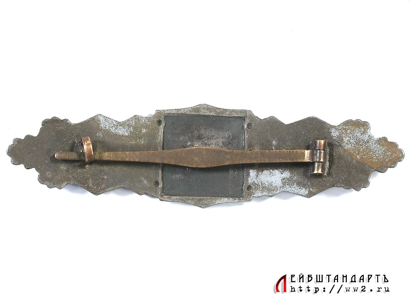 Шпанга "За ближний бой " в бронзе, которой отмечались военнослужащие, имевшие 15-дневный опыт сражений в ближнем бою без поддержки танковыми частями. Изготовлена из бронзированного цинкового сплава, заколка латунная. Без клейм. Знак в очень хорошей сохранности.
