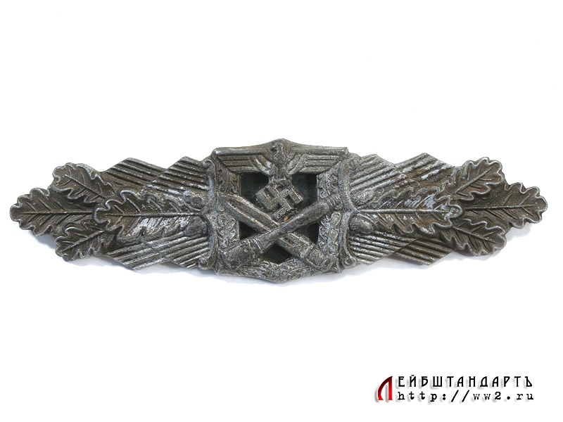 История: "Nahkampfspange" учреждена 25 ноября 1942 года Фюрером, чтобы "отмечать мужество германского солдата в рукопашном бою". Награда имела три класса: бронзовая, серебряная и золотая. Награду вручали как правило командиры батальонов и полков, золотые планки с 26 марта 1944 года Фюрер вручал лично. Вручался знак в картонной коробке или пакете вместе с наградным документом. Носился на 1 см. выше наградных колодок над левым нагрудным карманом.