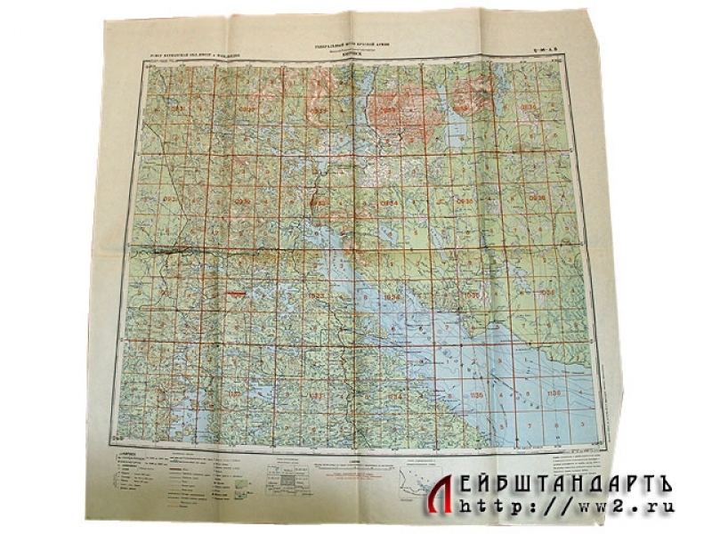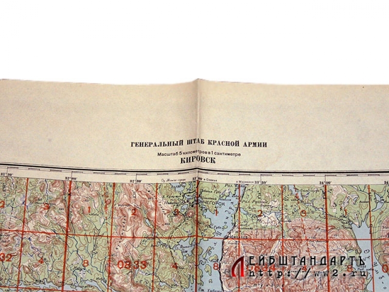 Изданная Генеральным штабом РККА накануне войны штабная карта города Кировска и прилегающих районов в масштабе 5 километров в одном сантиметре.