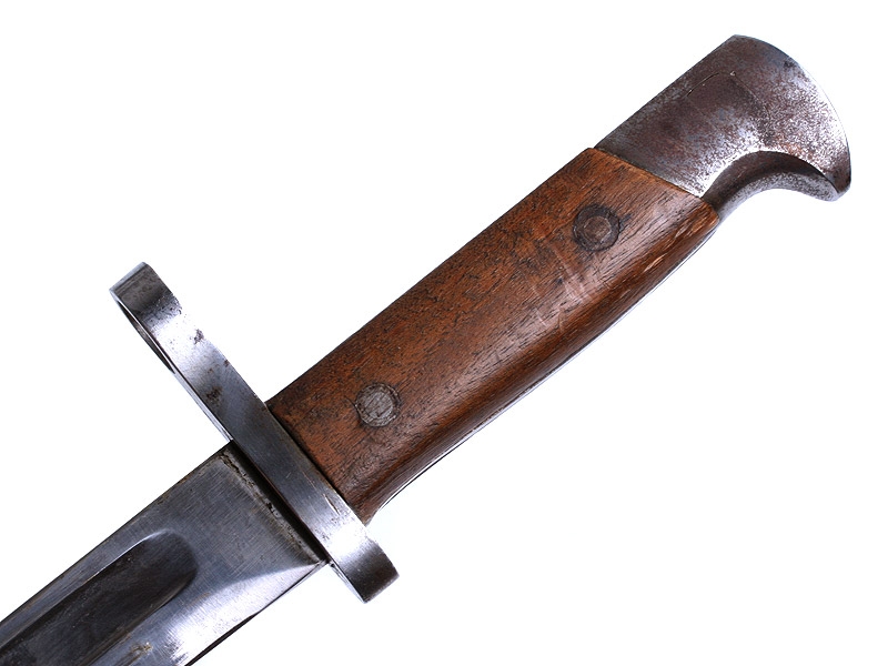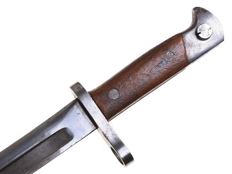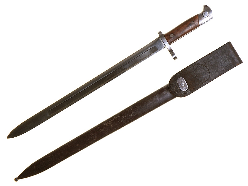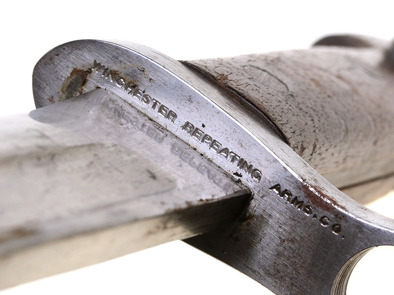 Штык к винтовке системы Винчестер образца 1895 года, изготовленной под стандартный русский винтовочный патрон 7,62 мм (для винтовки Мосина) по заказу Российского военного ведомства в период Первой мировой войны. Очень хорошее состояние, с подвесом. На гарде - клеймо "Winchester Repeating Arms Co".