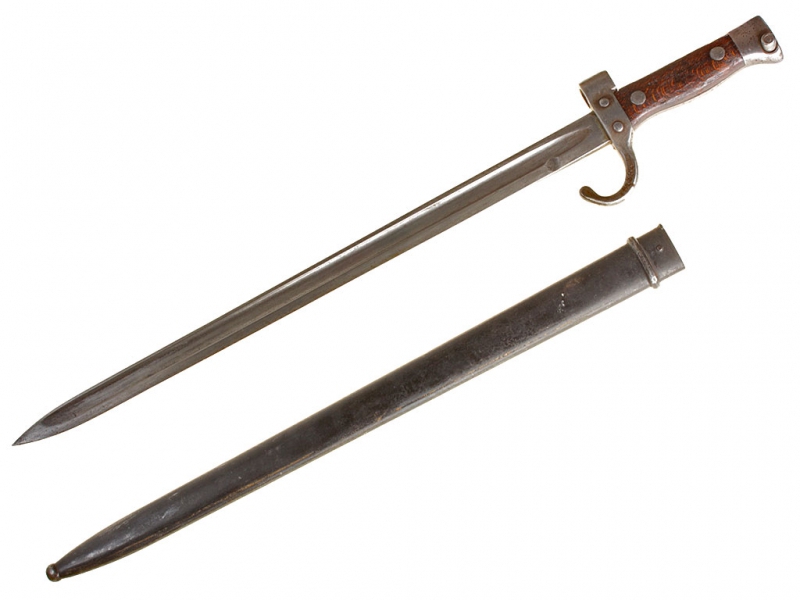 Штык образца 1892 года, использовавшийся с артиллерийскими карабинами образцов 1892 года, 1916 года и 1892/16 Т.27. Ножны металлические.