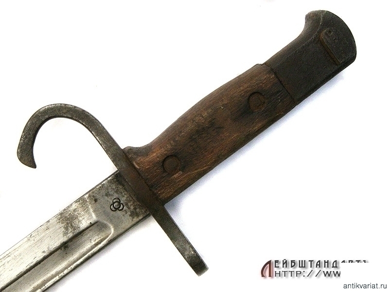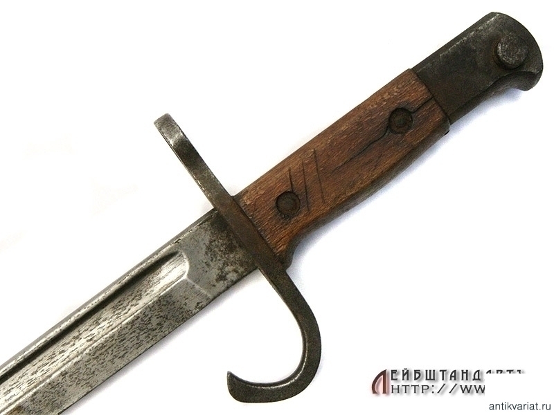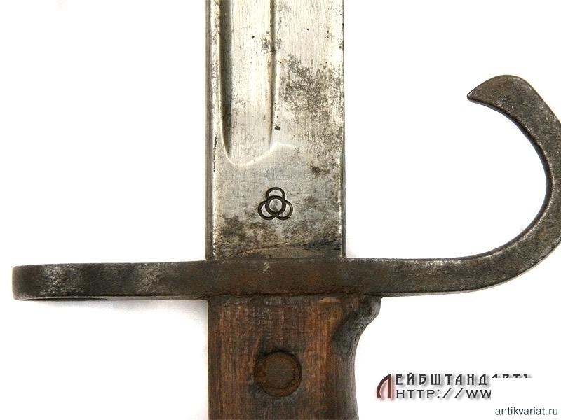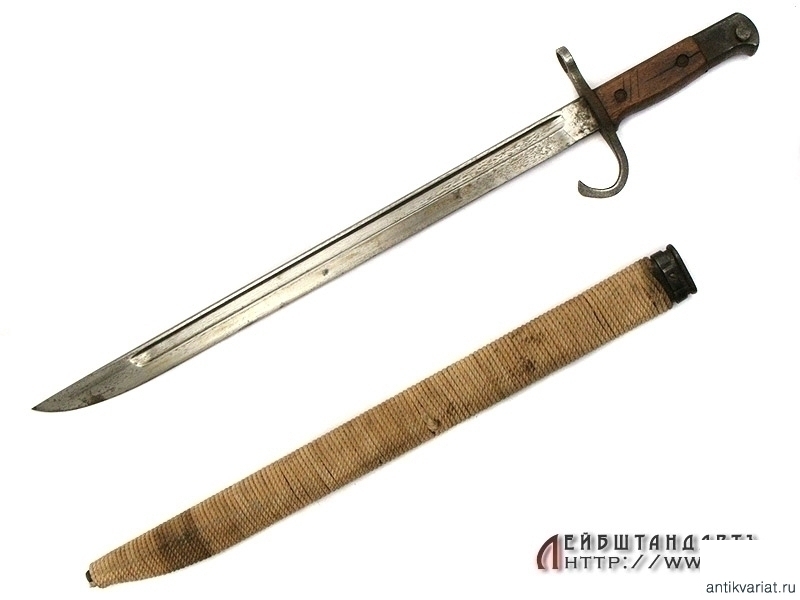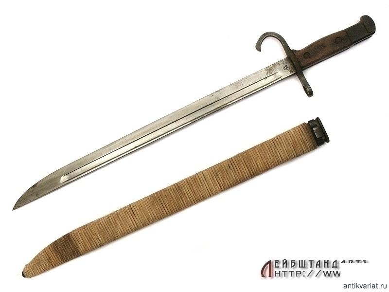 Штык к винтовке системы Арисака образца 1897 года ("тип 30"). Рукоять с двумя деревянными щечками, скрепленными с хвостовиком клинка двумя винтами. Гарда стальная прямая, с кольцом для ствола. У основания клинка имеются клейма арсенала. Ножны металлические, обмотка на них представляет собой "творчество" американского моряка, который привез данный штык на родину в качестве трофея сразу после Второй мировой войны.