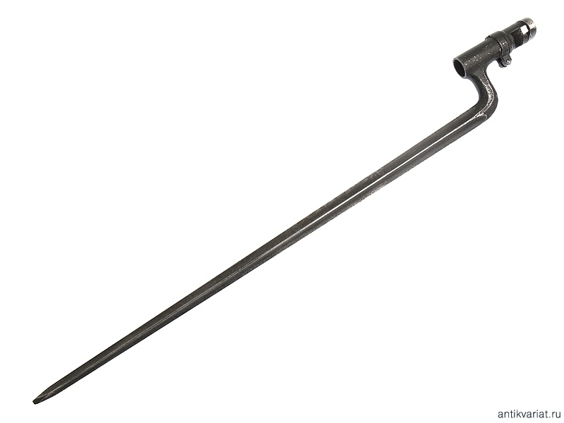 Штык к драгунской винтовке системы Бердана образца 1870 года в отличном состоянии. Четырехгранный клинок с долами, трубка с хомутиком. На шейке имеются клеймо Сестрорецкого оружейного завода, порядковый номер и клейма военной приемки.