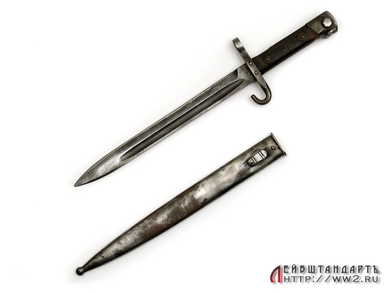 Штык к винтовке Маннлихер образца 1895 года в очень хорошем состоянии. Унтер-офицерский вариант, отличающийся от стандартного наличием крючка на крестовине. Использовался во время Первой мировой войны и позднее - в австрийской и чешской армиях.