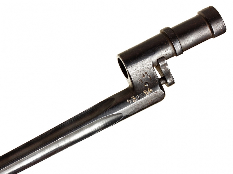 Штык к винтовке системы Мосина образца 1891/1930 года. Клинок четырехгранный, игольчатого типа. Трубка с Г-образной прорезью. В основание клинка вмонтирована пружинная защелка, фиксирующая штык при примыкании за основанием мушки. Поздняя модификация без намушника (он был перенесен на основание мушки винтовки). Оригинальное воронение.
