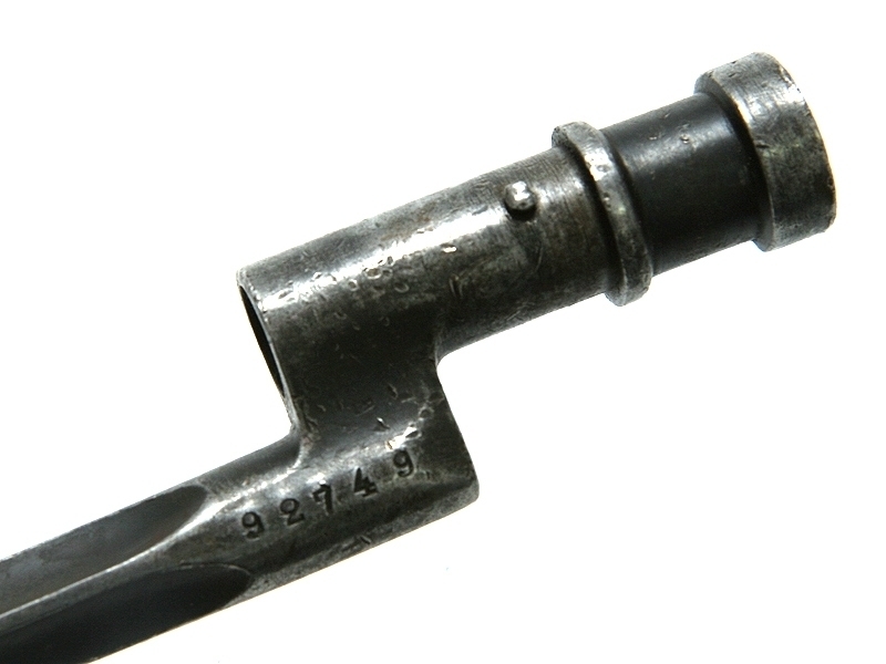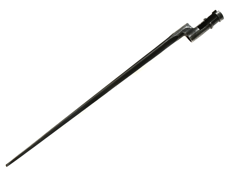 Игольчатый четырехгранный штык к винтовке Мосина выпуска 1910-х годов. Хомутик фиксатора отсутствует, имеются клейма военной приемки и номер.