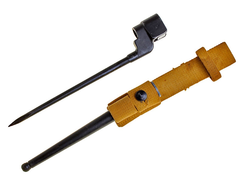 Штык Ли-Энфилд MKII в отличном состоянии. Клинок прямой, игольчатый, круглого сечения. Ножны стальные. Брезентовый подвес имеет с оборотной стороны израильские клейма - штыки данного типа поставлялись в начале 1950-х годов армии Израиля.