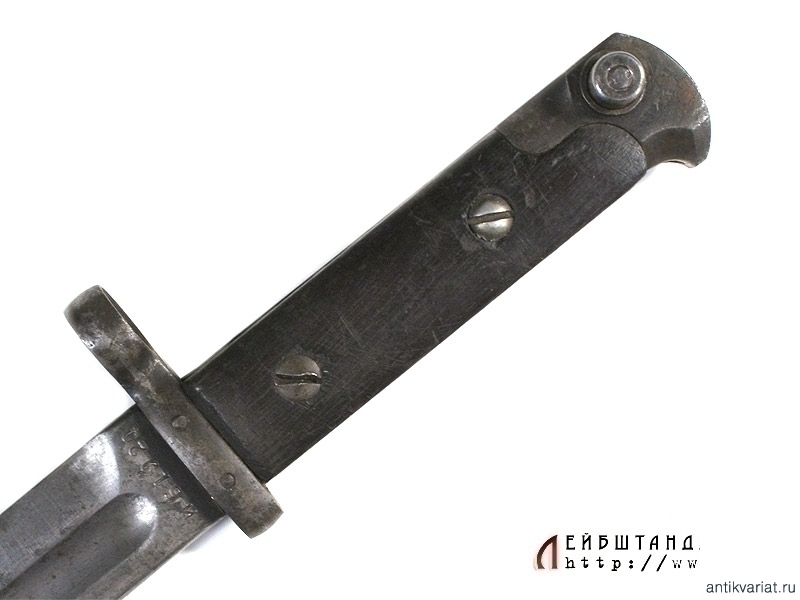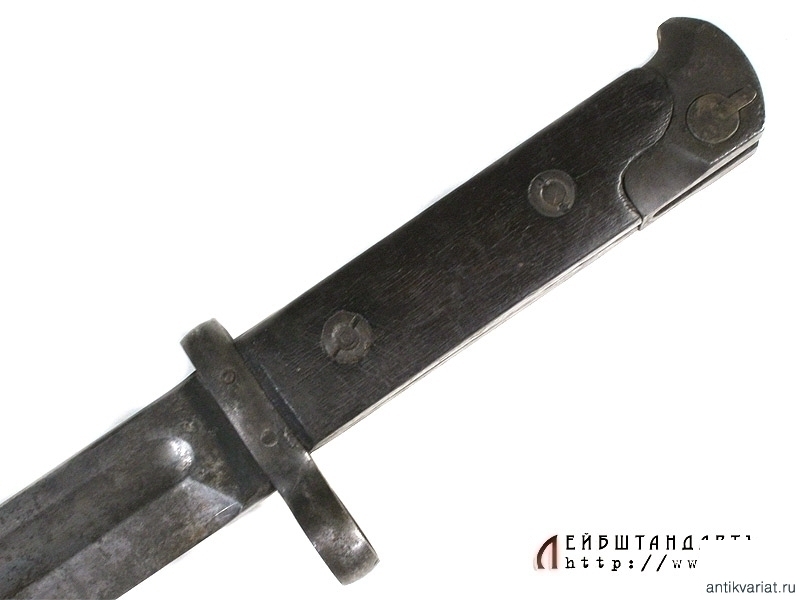 Штык к самозарядной винтовке Токарева в очень хорошем состоянии. Клинок со следами оригинального воронения, с долами, у основания клинка имеются штампы военной приемки и номер - ИБ 1920. На рукояти оригинальные деревянные накладки. Ножны металлические, снабжены кожаным подвесом.
