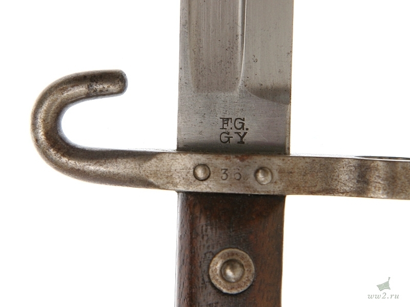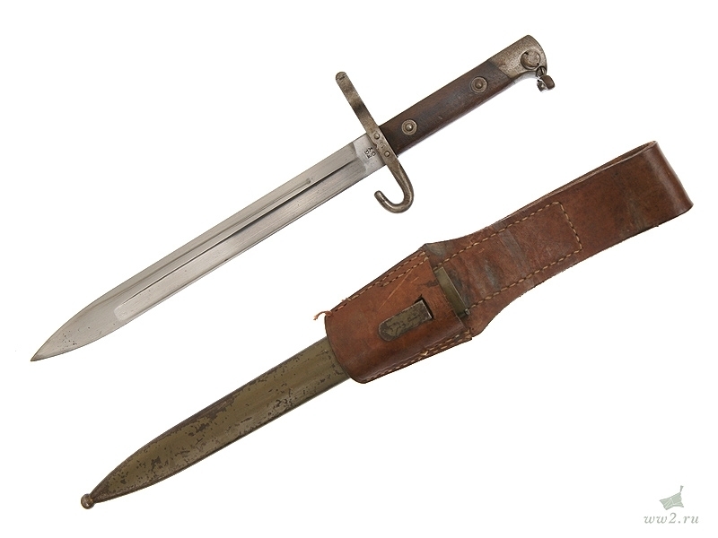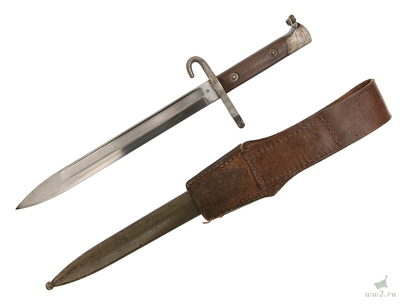 Штык к винтовке Маннлихер образца 1895 года. Унтер-офицерский вариант, отличающийся от стандартного наличием крючка на крестовине. Использовался во время Первой мировой войны и позднее - в австрийской и чешской армиях. Очень хорошее состояние.