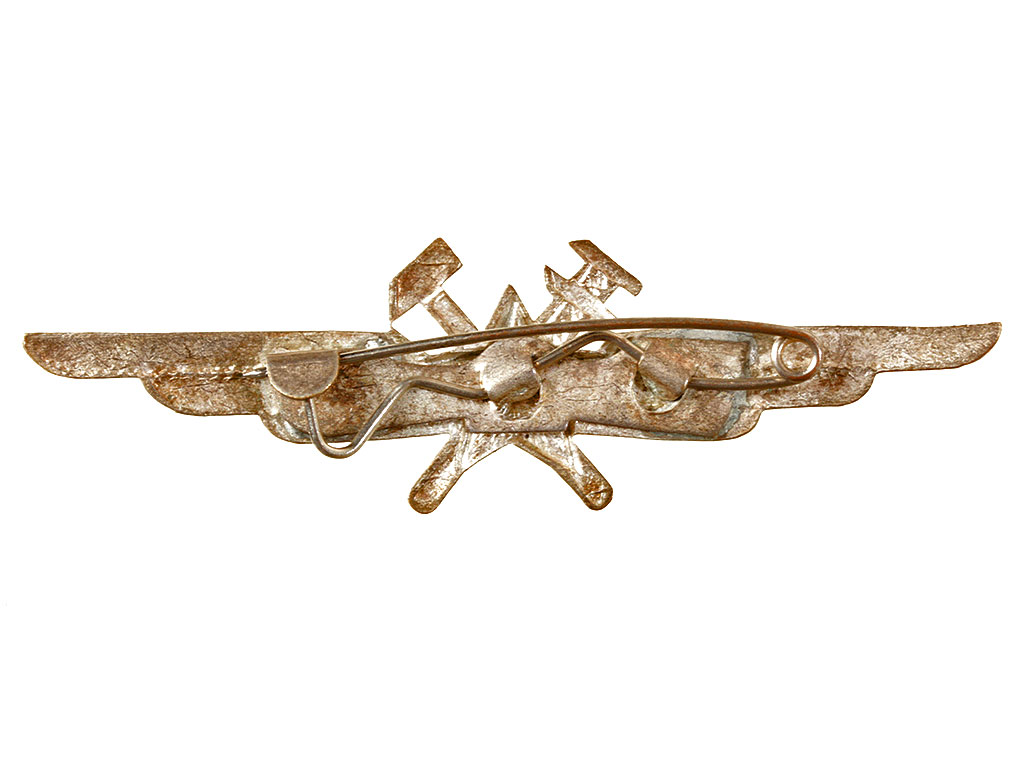 Нагрудный знак инженерного состава истребительно-авиационной службы и офицеров технического состава истребительно-авиационной службы, не имеющего классной квалификации. Томпак, серебрение, эмаль.