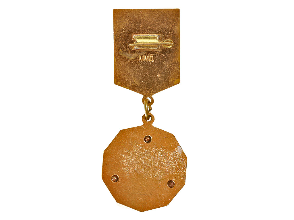 Знак ЦК ВЛКСМ "Молодой гвардеец 11 пятилетки" II степени. Московский монетный двор. Латунь, золочение, серебрение, эмаль.