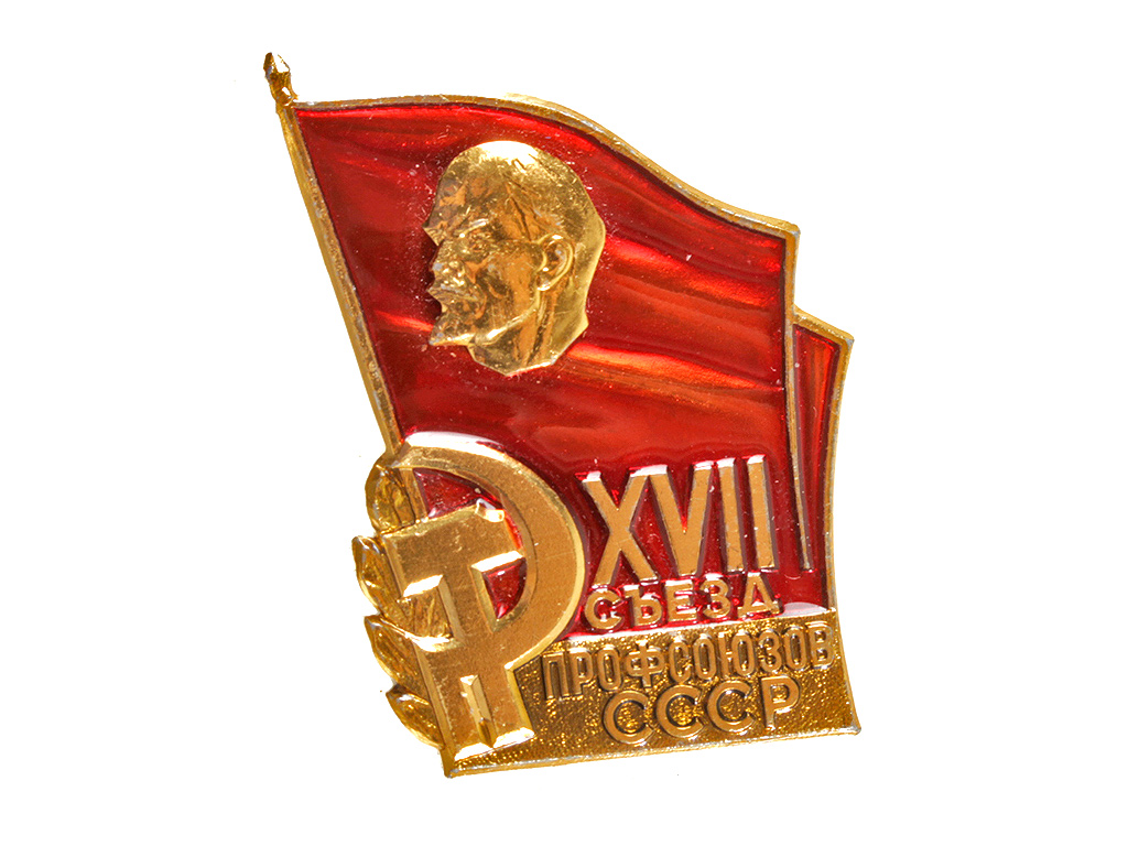 Знак делегата XVII съезда профессиональных союзов СССР. Алюминий, эмаль.