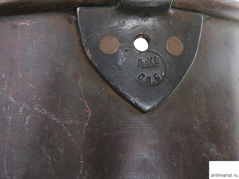 Медный полевой солдатский котелок выпуска 1890 года. На корпусе имеются клейма изготовителя. Отличное состояние.