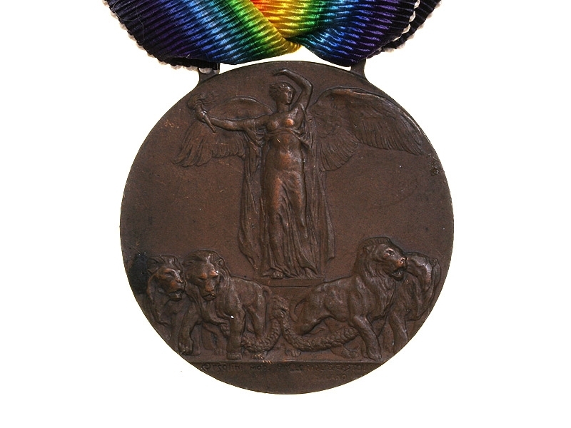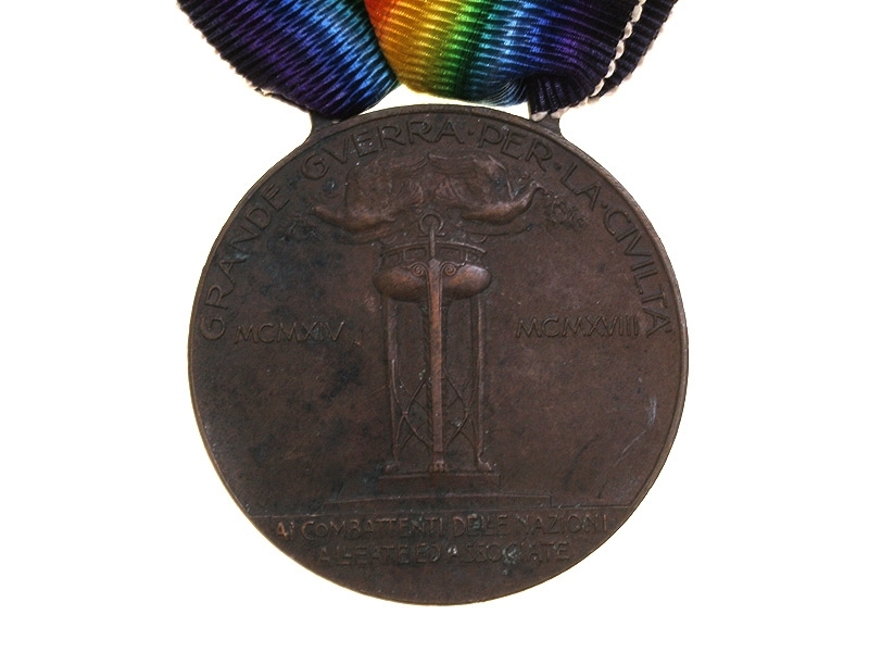 Союзническая медаль для итальянских участников Первой мировой войны. Бронза, на оригинальной шелковой радужной ленте.