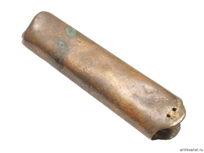 Латунный стакан ножен шашки нижних чинов драгунского типа образца 1881/1909 года.