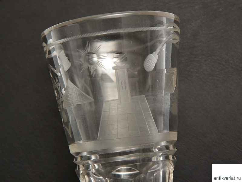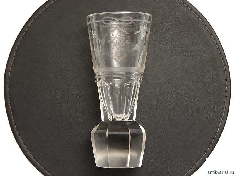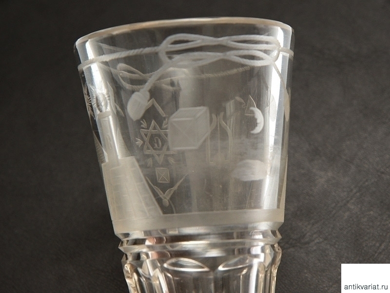 Стеклянный стакан, украшенный гравированными масонскими символами. Конец XIX - начало ХХ века. Отличное состояние.