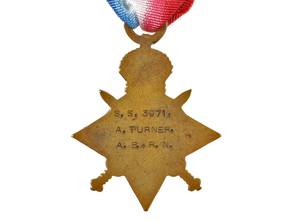 Звезда 1914 - 1915 годов. Бронза, на оригинальной шелковой ленте. Очень хорошее состояние. С именной гравировкой на реверсе "S.S. 3971, A.TURNER, A.B.R.N.".