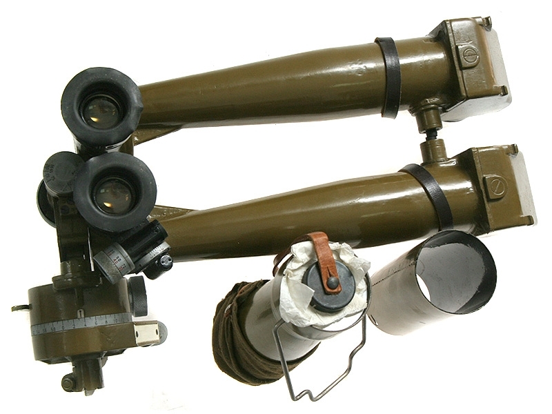 Стереотруба армейская АСТ для наблюдения из командного пункта, блиндажа, окопа и т.п. На основании окуляра имеется указание кратности "10 х 45", порядковый номер изделия и год выпуска - 1945. Труба в оригинальном футляре, в комплекте с раздвижным штативом. Полностью рабочая оптика, очень хорошее состояние.