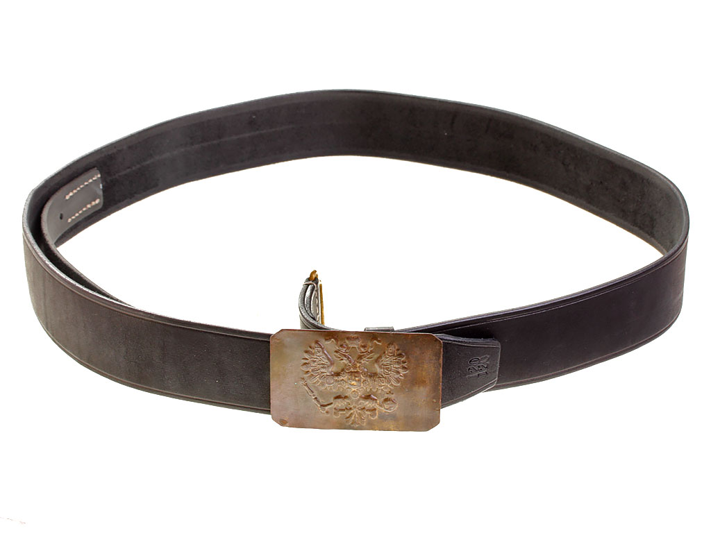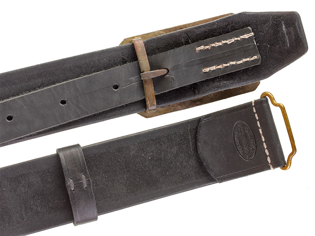 Качественная копия кожаного солдатского ремня с подпоясником (дополнительным вшитым с внутренней стороны ремешком, имеющим отверстие для язычка пряжки). Оригинальная латунная пряжка в комплекте.