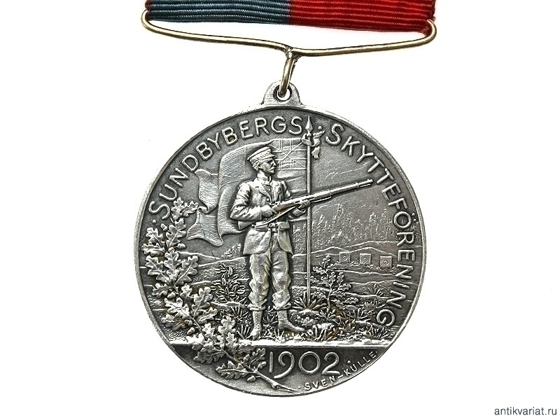 Медаль победителя стрелковых соревнований 1902 года. Серебро, на оригинальной шелковой ленте. Очень хорошее состояние.