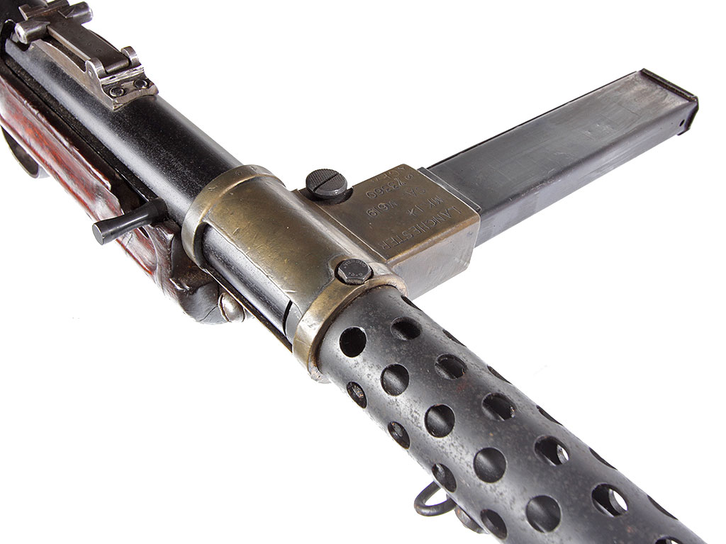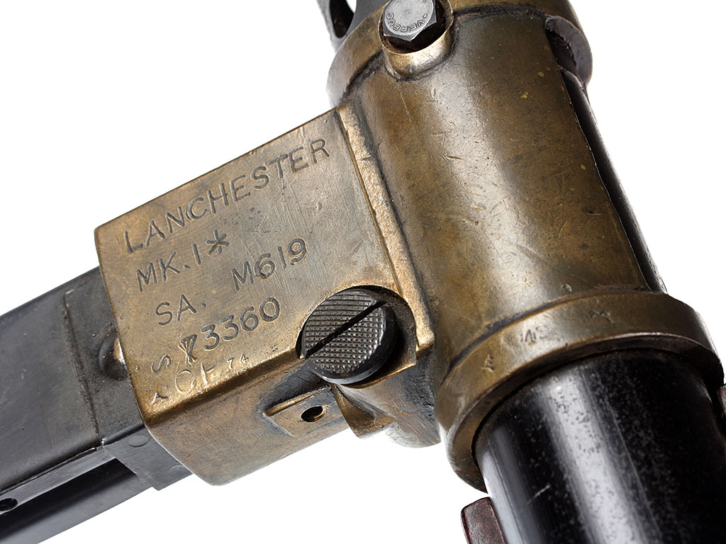 Пистолет-пулемет Ланчестер Мк.I* в отличной сохранности. Полностью на одном номере, в оригинальном воронении. Изначально изготовлен в качестве учебного оружия, ствольная коробка и затвор представляют собой монолит.