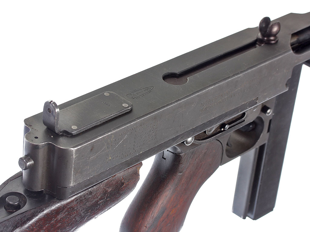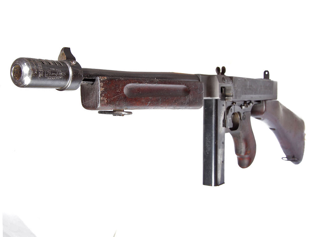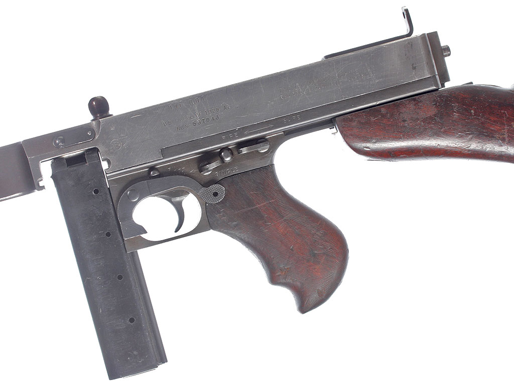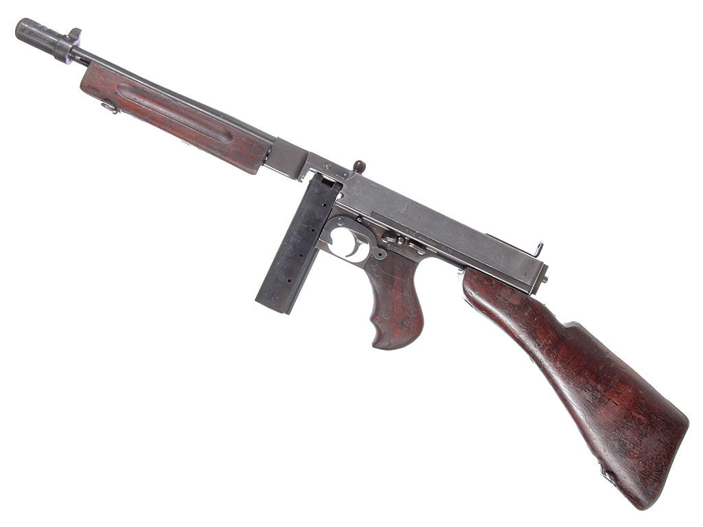 Пистолет-пулемет Томпсона образца 1928 года, модификация "А1" - позднего выпуска с гладким стволом: именно эта модификация в годы войны поставлялась в СССР по ленд-лизу.