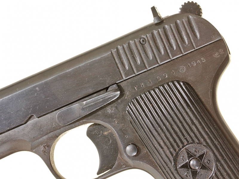 Пистолет системы Токарева образца 1930/33 года. Пистолет выпуска 1945 года, в кожаной послевоенной кобуре. На одном номере, отличное состояние. Запасной магазин и шомпол в комплекте.