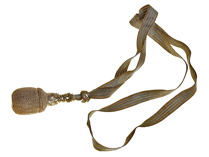 Баварский темляк из серебристой металлизированной нити с голубыми просветами для парадной офицерской сабли начала ХХ века. Очень хорошее состояние.