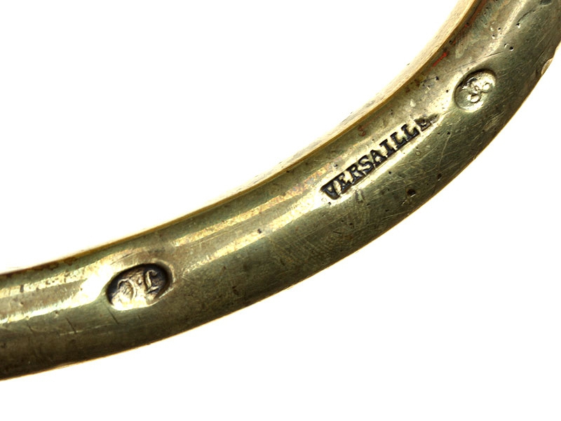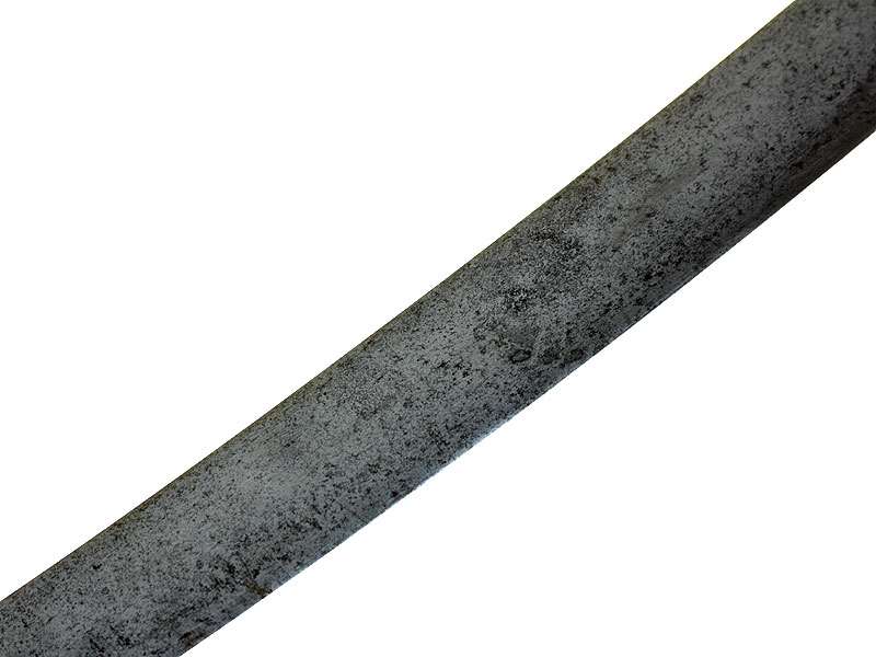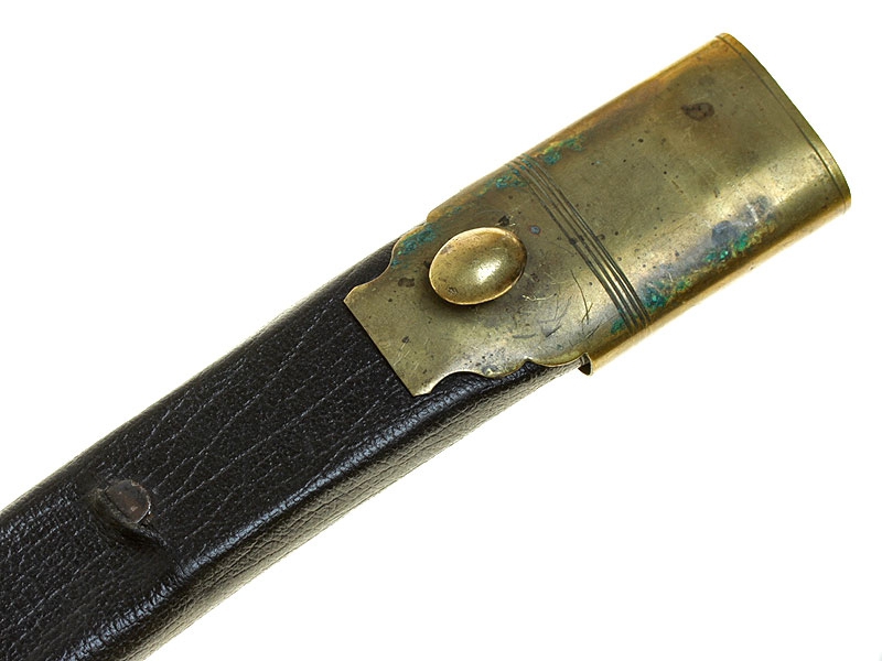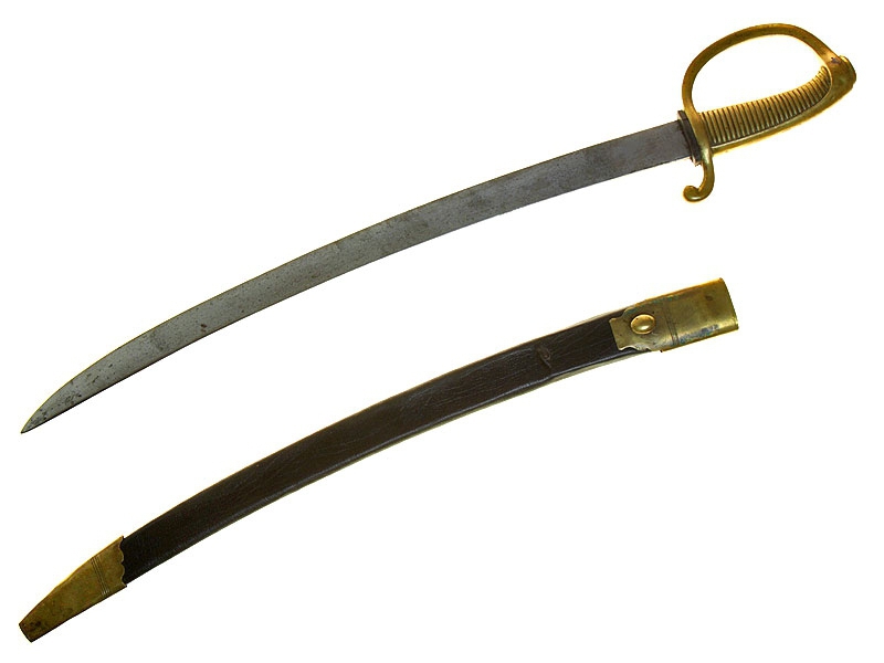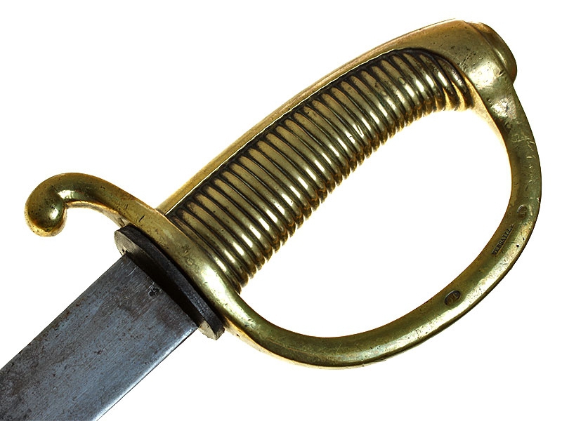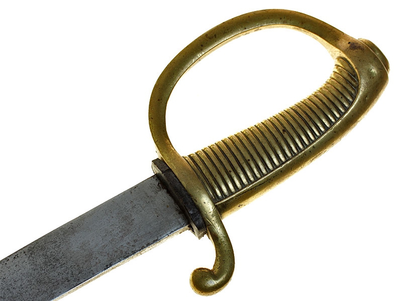 Тесак морской пехоты, модель XI года по революционному летоисчислению (1802 года). Клинок без долов, ничем не украшен, с миниатюрным приемочным клеймом в виде якоря у основания. Рукоять бронзовая литая с 28 поперечными желобками. На дужке имеются клейма "Versailles" (Версаль) и приемочные клейма. Ножны кожаные с бронзовым прибором. Хорошее состояние, кожа ножен - современного изготовления.