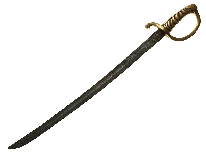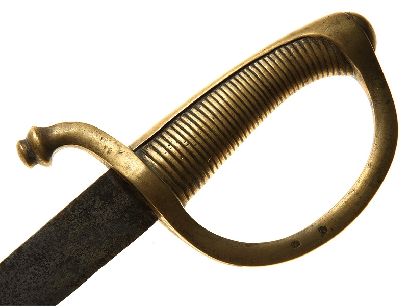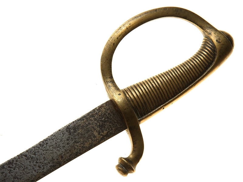Солдатский пехотный тесак образца 1817 года. Клинок без клейм. Эфес цельнолитой бронзовый, с арсенальными клеймами на дужке рукояти. Ножны отсутствуют.