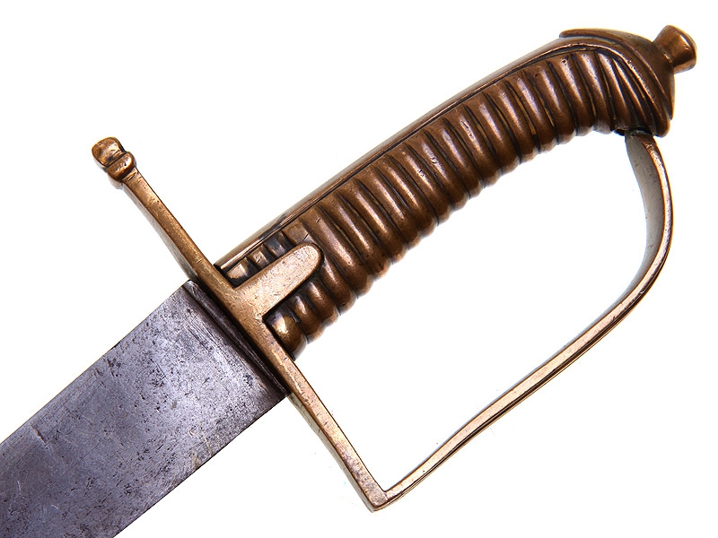 Пехотный солдатский тесак середины XIX века. Клинок без клейм. Рукоять бронзовая, с бронзовой гардой. Ножны отсутствуют.