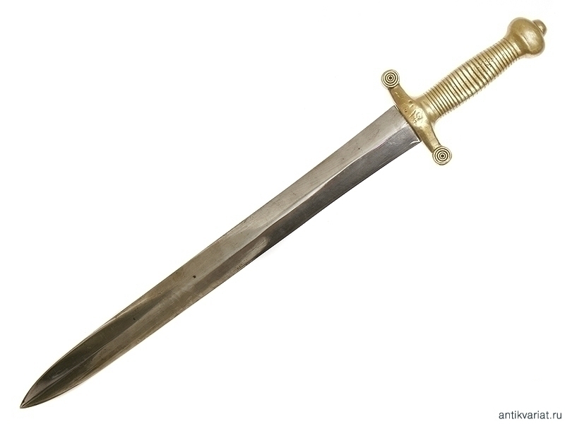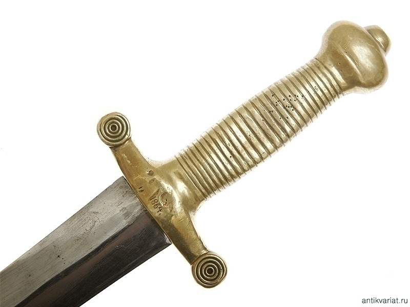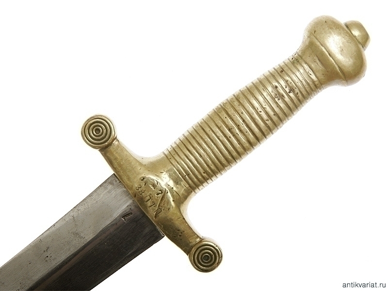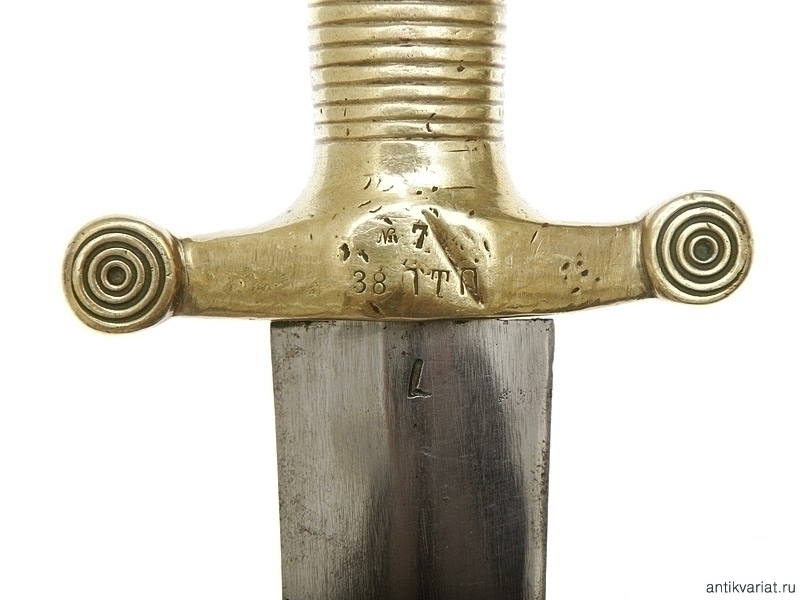 Солдатский пехотный тесак выпуска 1864 года. На перекрестии рукояти - полковые клейма: "38 ПТП". Очень хорошее состояние, ножны отсутствуют.