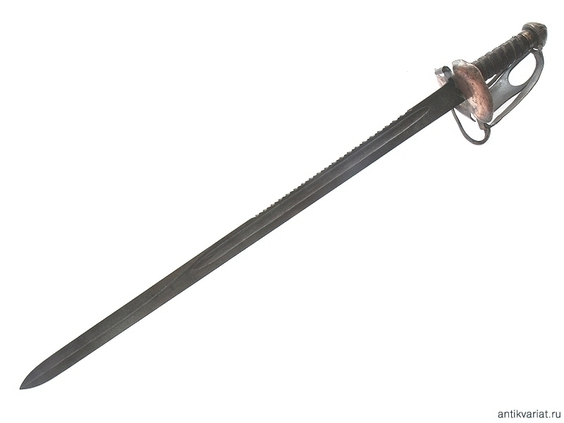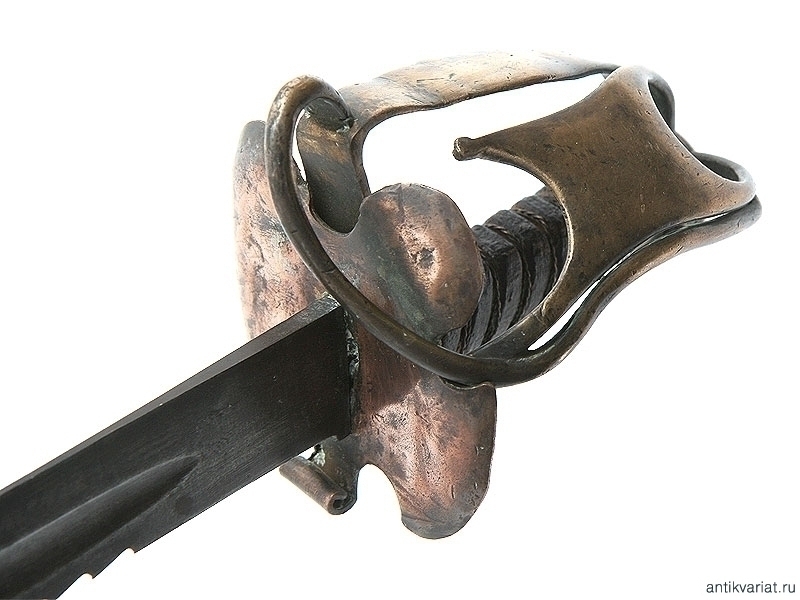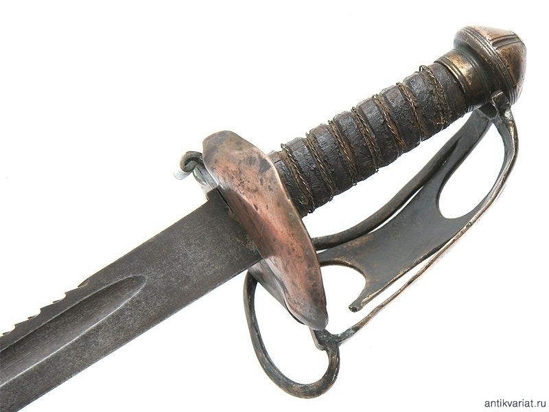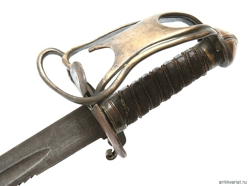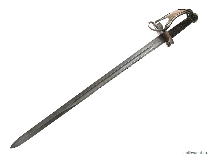 Тесак с пилой на обухе клинка, без клейм. На клинок установлена рукоять от палаша офицера Хайлендерской пехоты образца 1798 года с частично утраченными дужками гарды. Данный предмет представляет собой декоративную компилляцию из двух различных образцов холодного оружия, предназначенную для украшения интерьера.