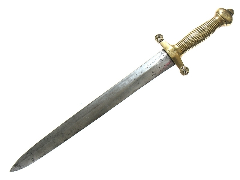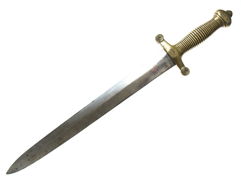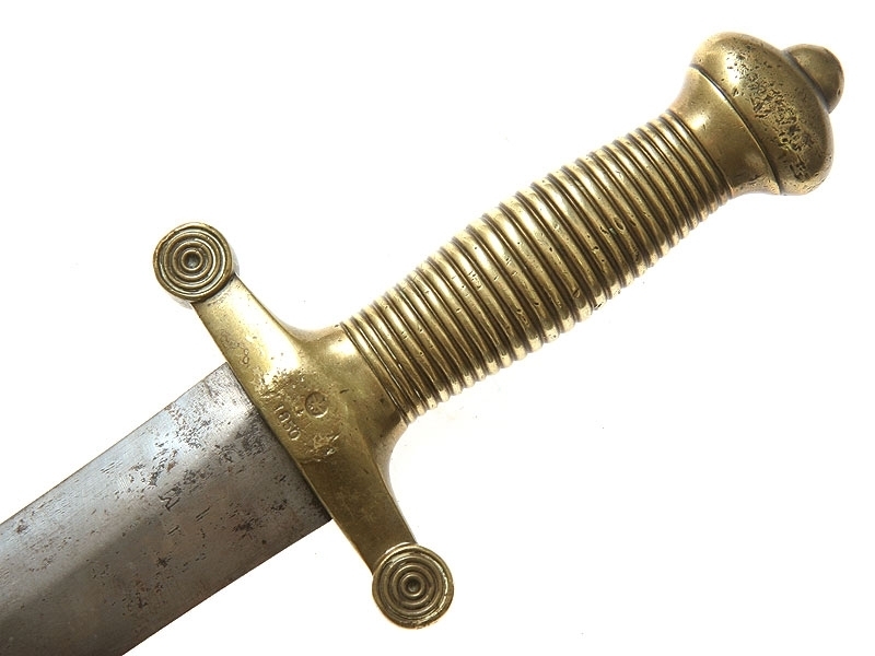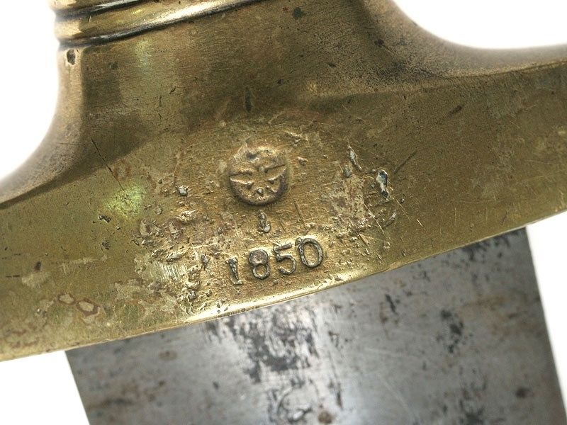 Саперный тесак нижних чинов образца 1848 года. Клинок со следами затачивания, у основания заметны клейма военной приемки. На перекрестии бронзового эфеса проставлен год выпуска - 1850 с дополнительным клеймом с изображением двуглавого орла. Ножны отсутствуют.