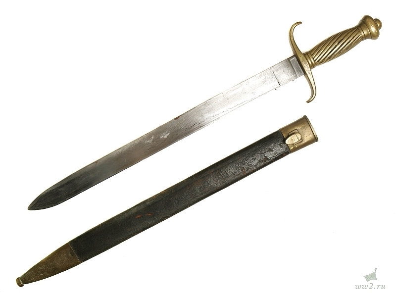 Солдатский тесак прусского изготовления выпуска 1850 года. На гарде имеются клейма подразделения. Очень хорошее состояние.