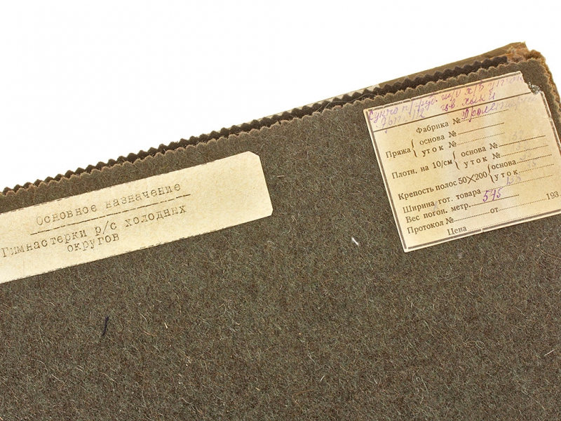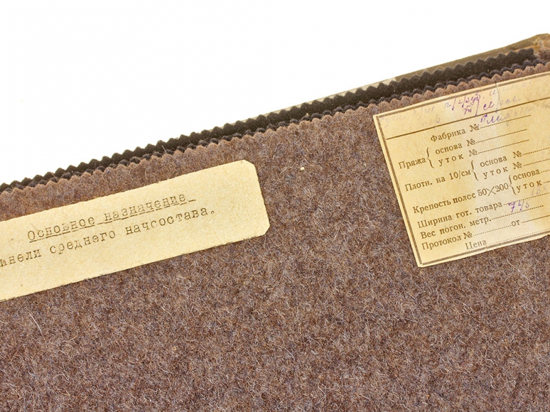 Все листы ткани сохранились в альбоме в первозданном виде, не выцветшие и не выгоревшие, без малейших повреждений от моли. Дают полное, не искаженное временем представление о цвете и фактуре суконной униформы войск НКВД того периода.