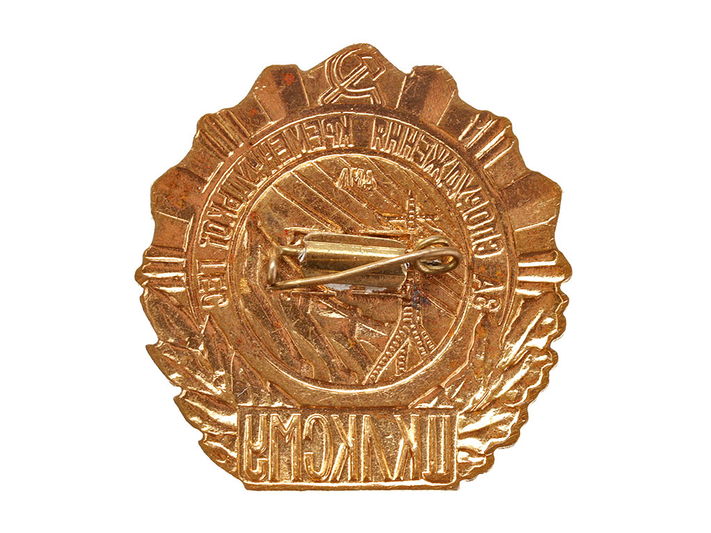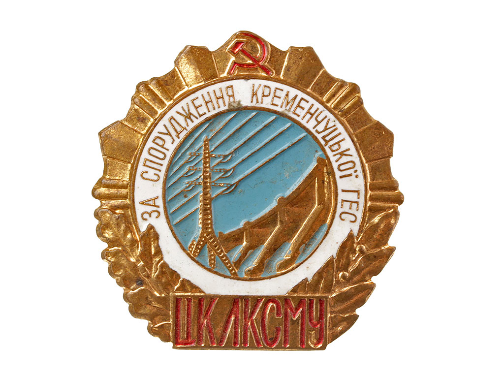 Знак "За спорудження Кременчуцькоi ГЕС" ЛКСМ Украины. Томпак, эмаль, золочение.