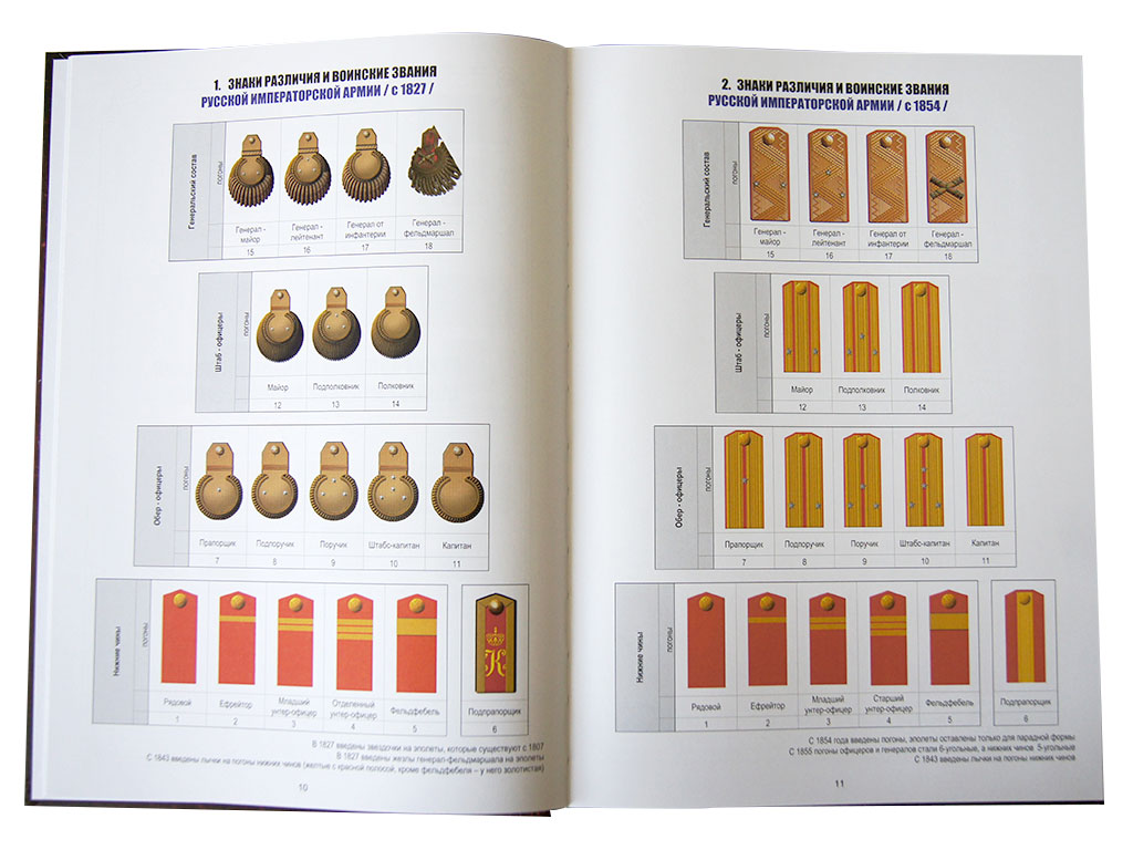 Настоящее издание представляет собой систематизированный справочник об использовавшихся форменных знаках различия, а также о соответствовавших им воинским (армия и флот) и специальным (органы госбезопасности и МВД) званиям в России с периода Екатерины II по наши дни.